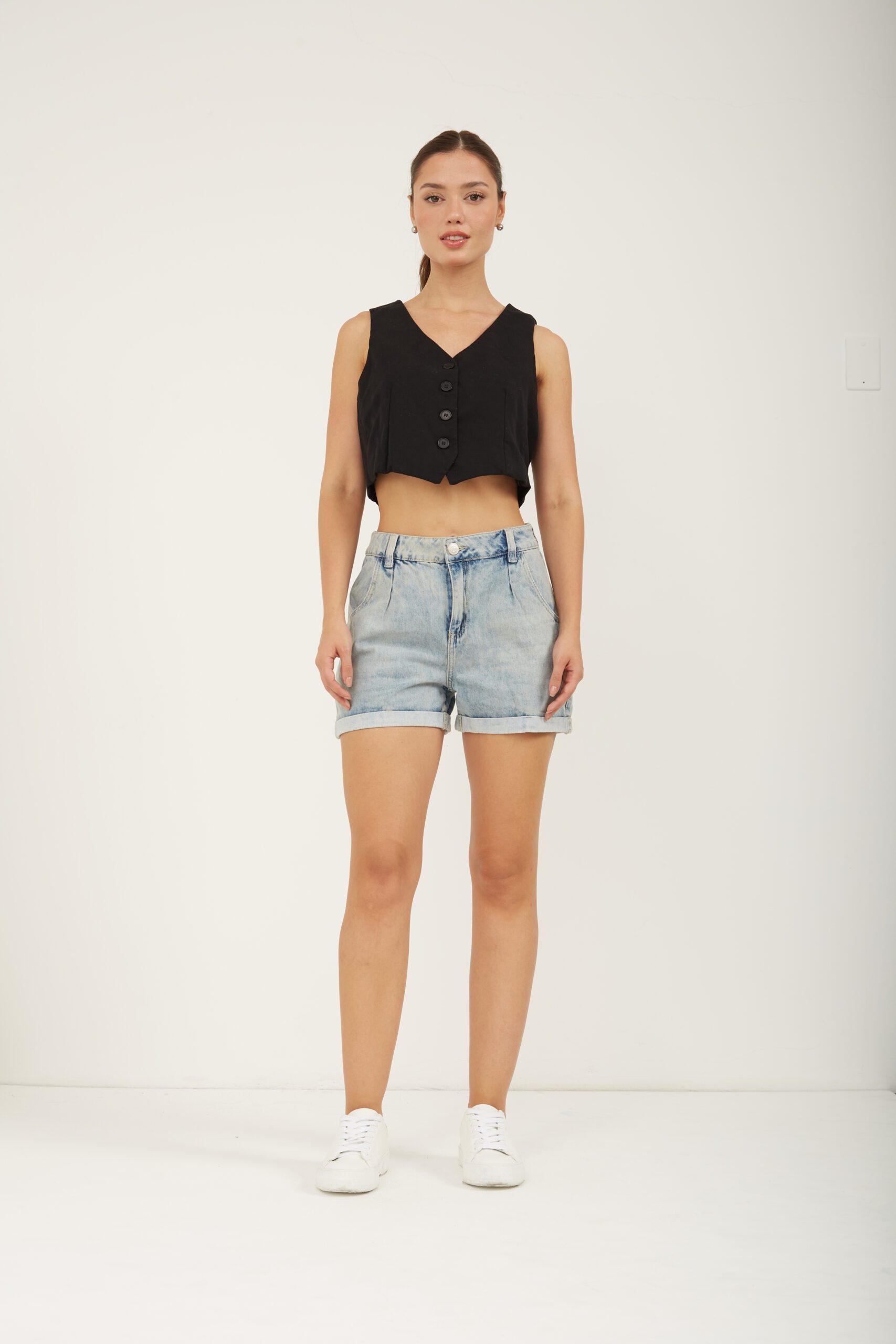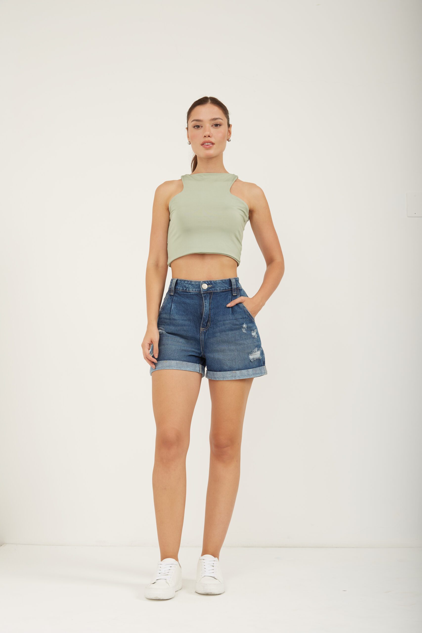 Jean Momfit Bota Recta Cargo. Tiro Alto – High Waist. Diseño 7 Bolsillos. Cierre de cremallera y botón. Tela Licrada. Material: 98% algodón 2% elastano.