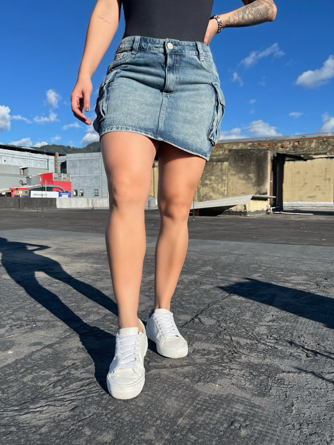 Jean Wide Leg Cargo. Tiro Semi Alto – Semi High Waist. Diseño 7 Bolsillos. Bolsillos Cargo con cierre de Botón. Cierre de cremallera y botón. Tela Rígida. Material: 100%