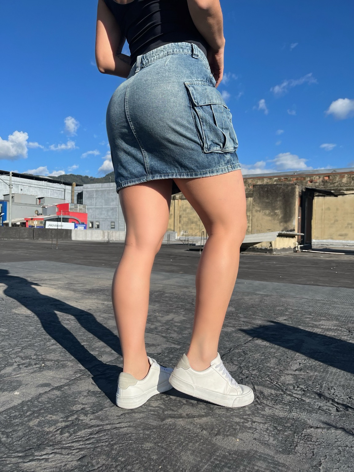Jean Wide Leg Cargo para mujer. Tiro Semi Alto – Semi High Waist. Diseño 7 Bolsillos. Bolsillos Cargo con cierre de Botón. Cierre de cremallera y botón. Tela Rígida. Material: 100%